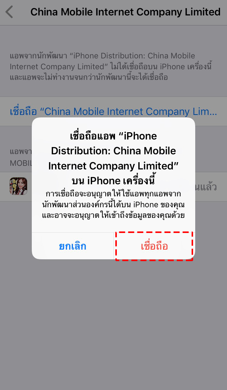 2.เมื่อเปิดAPPแล้ว 2. คลิกที่แอพ ระบบจะแสดงข้อความที่ไม่น่าเชื่อถือ กดยกเลิก