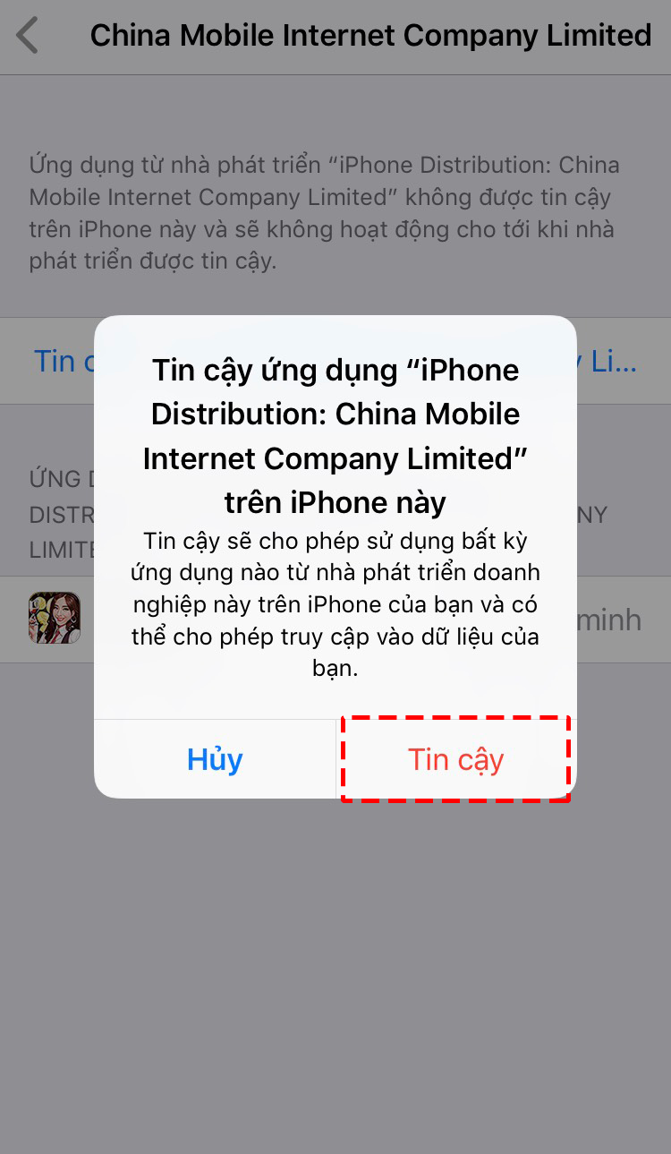 2. Mở ứng dụng, làm theo hướng dẫn từ hệ thống không chọn mục Trust, chọn Cancel